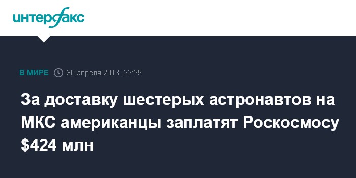 За доставку шестерых астронавтов на МКС американцы заплатят Роскосмосу $424 млн