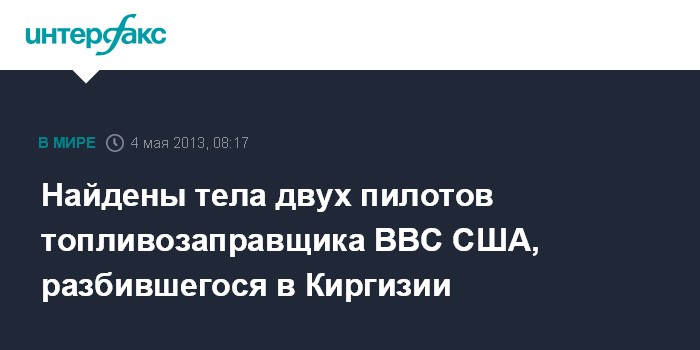 Бишкек. 4 мая. ИНТЕРФАКС - Обнаружены два тела пилотов американского топливозаправщика КС-135, разбившегося в Киргизии, сообщил "Интерфаксу" в субботу министр чрезвычайных ситуаций республики Кубатбек Боронов.
