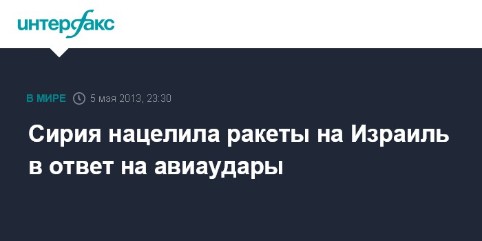 Иерусалим. 5 мая. INTERFAX.RU - Сирия развернула ракеты, нацеленные на Израиль, в ответ на авиаудары по сирийской территории, сообщает в воскресенье израильская газета "Джерузалем пост".