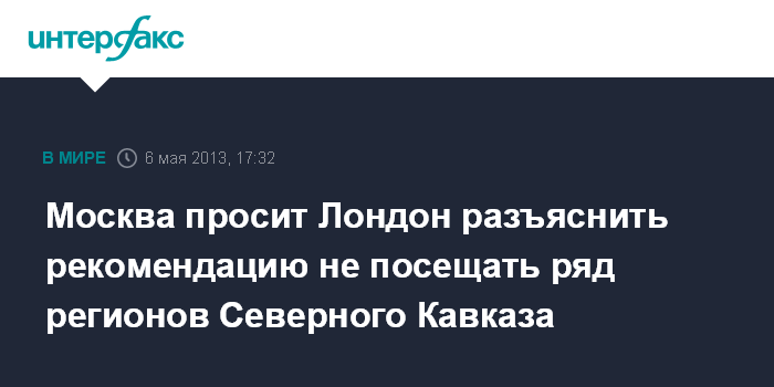 Лондон. 6 мая. INTERFAX.RU - Посольство России в Великобритании недоумевает в связи с рекомендацией британского министерства иностранных дел подданным Соединенного королевства не планировать поездки в ряд республик Северного Кавказа.