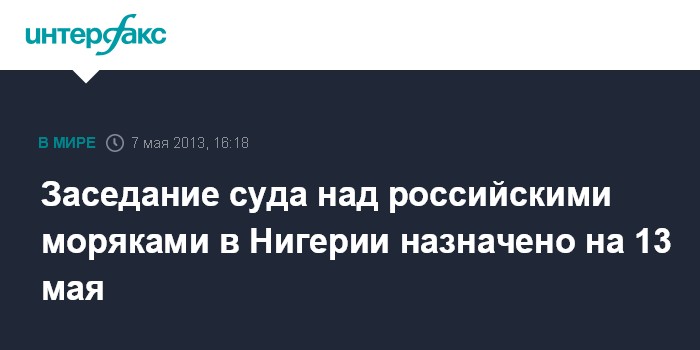 Заседание суда над российскими моряками в Нигерии назначено на 13 мая