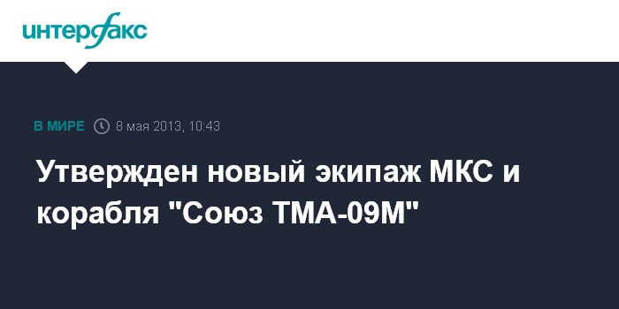 Утвержден новый экипаж МКС и корабля "Союз ТМА-09М"