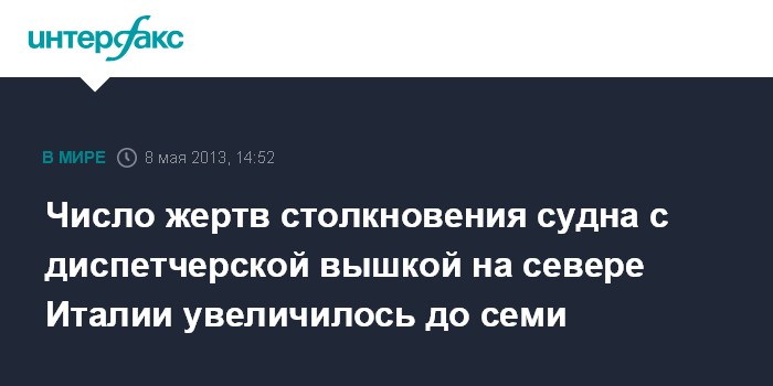 Число жертв столкновения судна с диспетчерской вышкой на севере Италии увеличилось до семи