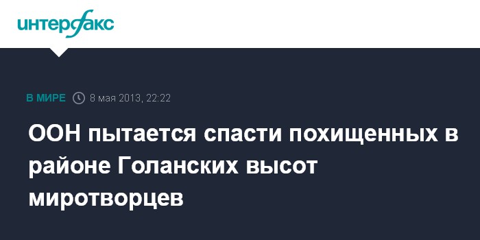 Нью-Йорк (ООН). 8 мая. INTERFAX.RU - ООН ведет операцию по освобождению захваченных четырех филиппинских миротворцев, одновременно прилагая усилия для обеспечения безопасности всех своих сотрудников в Голанских высотах.