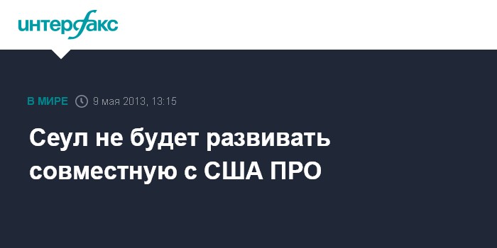 Сеул. 9 мая. INTERFAX.RU - Министерство обороны Южной Кореи в четверг отвергло возможность участия страны в строительстве системы ПРО под руководством США. "У Южной Кореи есть собственная система ПРО, которая поражает ракеты на конечной стадии, она лучше приспособлена для противодействия растущим ракетным угрозам со стороны Северной Кореи", - заявил представитель министерства Ким Мин Сок.