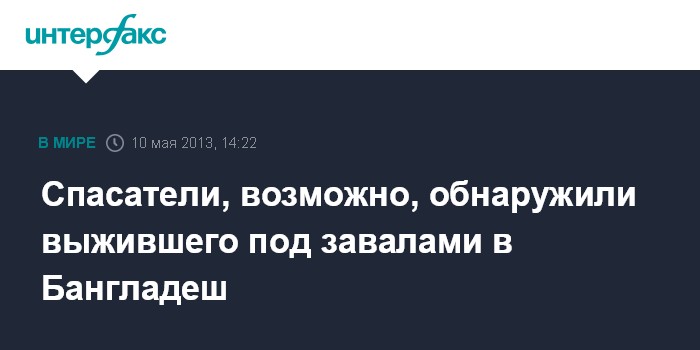 Дели. 10 мая. INTERFAX.RU - Под обломками обрушившегося здания в Бангладеш, вероятно, обнаружили выжившего, сообщает в пятницу агентство AP.