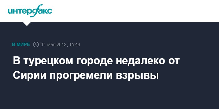 Бейрут. 11 мая. INTERFAX.RU - Два взрыва произошли в субботу в городе Рейханлы в турецкой провинции Хатай, неподалеку от границы с Сирией, сообщает в субботу ливанская газета "Дейли стар" со ссылкой на местного чиновника.
