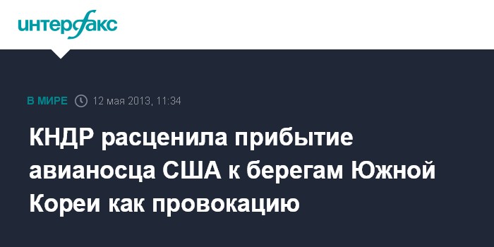 Сеул. 12 мая. INTERFAX.RU - Направление США атомного авианосца "Нимиц" к берегам Южной Кореи для участия в учениях является серьезной военной провокацией, говорится в заявлении северокорейского Комитета по мирному объединению, распространенному по каналам ЦТАК в воскресенье.