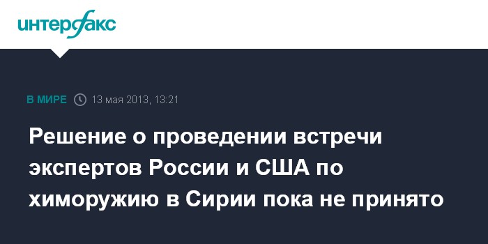 Москва. 13 мая. INTERFAX.RU - Пока неизвестно, состоится ли встреча российских и американских экспертов по расследованию сообщений о применении химического оружия в Сирии, сообщил замглавы МИД России Сергей Рябков.