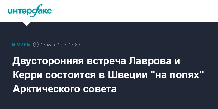 Москва. 13 мая. INTERFAX.RU - Глава МИД России Сергей Лавров и госсекретарь США Джон Керри проведут двустороннюю встречу в Кируне (Швеция) "на полях" министерской встречи Арктического совета, сообщил замглавы МИД Сергей Рябков.