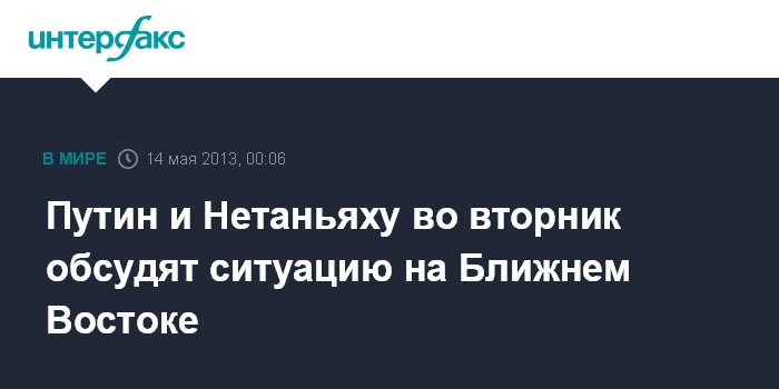 Москва. 14 мая. INTERFAX.RU - Владимир Путин во вторник проведет в Сочи переговоры с премьер-министром Израиля Биньямином Нетаньяху, который прибудет в Россию с рабочим визитом, сообщила в понедельник пресс-служба Кремля.