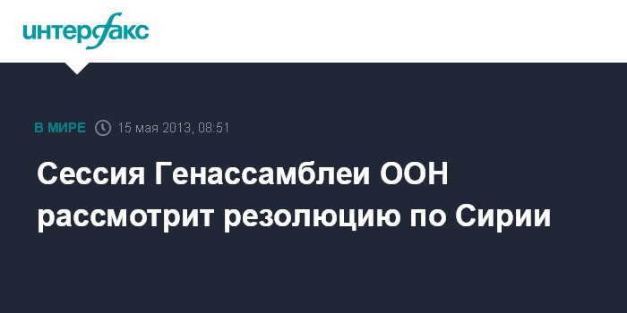 Нью-Йорк (ООН). 15 мая. INTERFAX.RU - Сессия Генеральной Ассамблеи ООН в среду планирует рассмотреть резолюцию, осуждающую сирийские власти, а также предлагающую рассматривать Национальную коалицию сирийских революционных и оппозиционных сил (НКСРОС) в качестве структуры, которая может сменить нынешнее правительство страны.