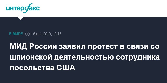 МИД России заявил протест в связи со шпионской деятельностью сотрудника посольства США