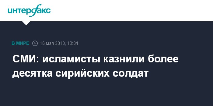Дубай. 16 мая. INTERFAX.RU - Бойцы действующей в Сирии радикальной исламистской группировки "Фронт ан-Нусра" опубликовали видеозапись, на которой запечатлена казнь 11 солдат сирийской армии, передает в четверг межарабский телеканал Al Jazeera.