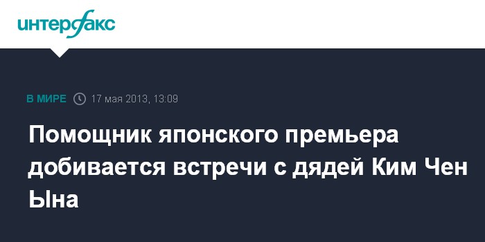 Токио. 17 мая. INTERFAX.RU - Находящийся с визитом в КНДР помощник японского премьер-министра Синдзо Абэ Исао Иидзима предпринимает попытки встретиться с Чан Сон Тхэком - дядей Ким Чен Ына и ключевой фигурой в северокорейском руководстве, сообщает в пятницу японский канал "Фудзи-ТВ".