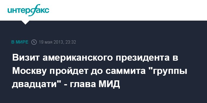 Визит американского президента в Москву пройдет до саммита "группы двадцати" - глава МИД