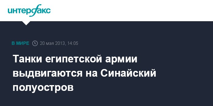 Каир. 20 мая. INTERFAX.RU - Египетская армия отправила танковые части на Синайский полуостров, сообщает в понедельник государственное телевидение Египта.