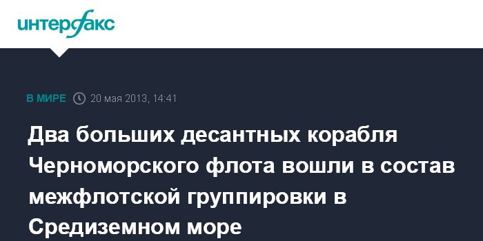 Москва. 20 мая. INTERFAX.RU - В ходе плановой ротации сил межфлотской корабельной группировки большие десантные корабли (БДК) Черноморского флота "Николай Фильченков" и "Азов" приступили к выполнению задач в Средиземном море, сообщил в понедельник "Интерфаксу-АВН" официальный представитель ЧФ капитан 1-го ранга Вячеслав Трухачев.