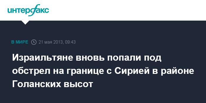 Иерусалим. 21 мая. INTERFAX.RU - Армия обороны Израиля подтвердила, что израильские солдаты, попавшие в ночь на вторник под обстрел с сирийской стороны в районе Голанских высот, открыли ответный огонь.