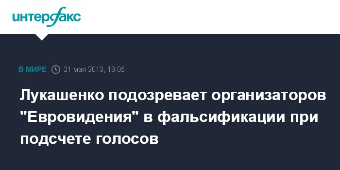 Минск. 21 мая. INTERFAX.RU - Президент Белоруссии Александр Лукашенко объясняет нулевую оценку от России для белорусской участницы "Евровидения" Алены Ланской общей политизацией этого конкурса и фальсификациями со стороны организаторов.