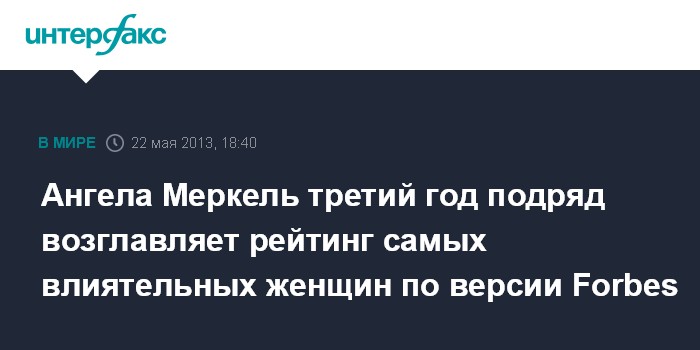 Вашингтон. 22 мая. INTERFAX.RU - Канцлер ФРГ Ангела Меркель в этом году вновь признана самой влиятельной женщиной в мире согласно ежегодному рейтингу, опубликованному на сайте американского журнала Forbes.