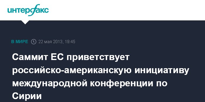 Саммит ЕС приветствует российско-американскую инициативу международной конференции по Сирии