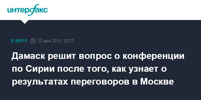 Дамаск решит вопрос о конференции по Сирии после того, как узнает о результатах переговоров в Москве
