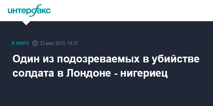 Лондон. 23 мая. INTERFAX.RU - По меньшей мере один из двух человек, подозреваемых в убийстве военнослужащего в британской столице, родом из Нигерии, сообщает в четверг британский телеканал Sky News.