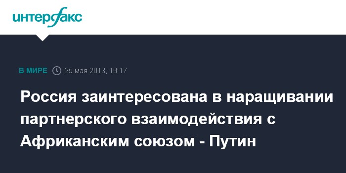 Россия заинтересована в наращивании партнерского взаимодействия с Африканским союзом - Путин