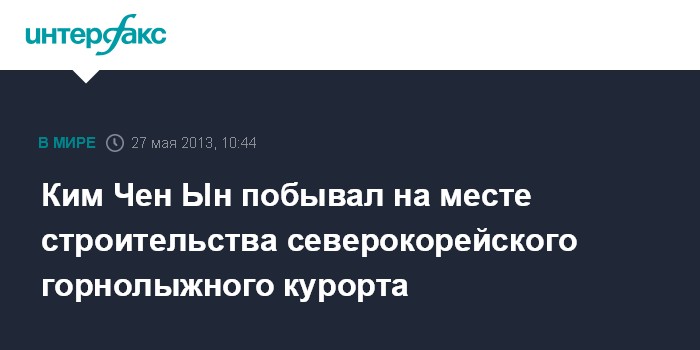 Сеул. 27 мая. INTERFAX.RU - Северокорейский лидер Ким Чен Ын проинспектировал место строительства горнолыжного комплекса на востоке КНДР, сообщает северокорейское агентство ЦТАК. Он побывал на смотровой площадке, а также выслушал подробный отчет о начальном этапе строительства, отмечается в сообщении.