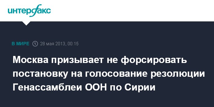 Москва призывает не форсировать постановку на голосование резолюции Генассамблеи ООН по Сирии