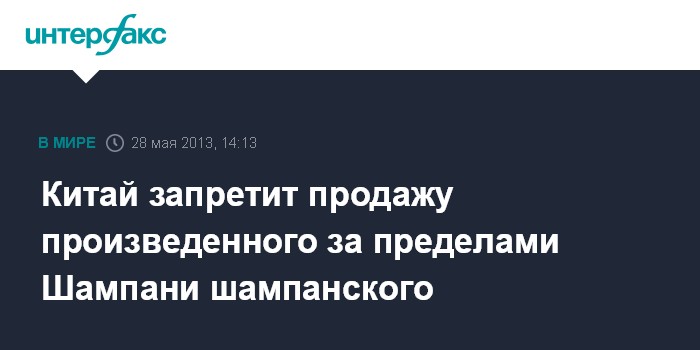 Решение китайских властей было с одобрением встречено в Комитете производителей шампанского.