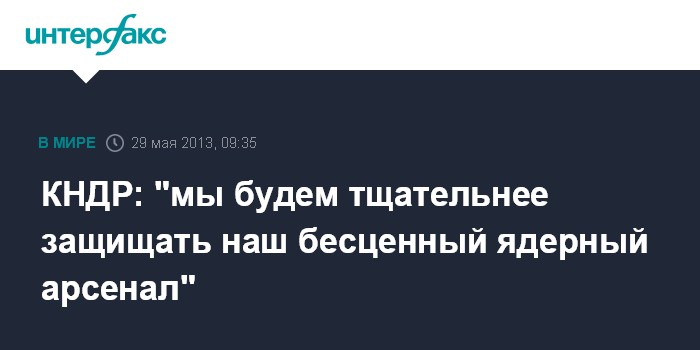 Сеул. 29 мая. INTERFAX.RU - КНДР должна сохранить ядерный арсенал, так как без него стране будет трудно бороться против врагов, говорится в опубликованной в среду статье официальной северокорейской газеты "Нодон синмун".