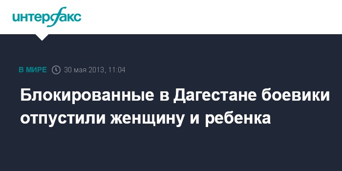 Москва. 30 мая. INTERFAX.RU - Спецслужбам удалось убедить блокированных в дагестанском Хасавюрте боевиков отпустить женщину с шестимесячным ребенком. Сами боевики отказались сложить оружие.