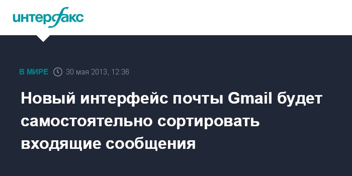 Москва. 30 мая. INTERFAX.RU – Почтовый сервис Google анонсировал запуск нового вида папки входящих сообщений, упрощающая организацию писем.