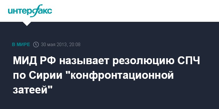 Москва. 30 мая. INTERFAX.RU - МИД РФ выступил с осуждением принятой Советом ООН по правам человека (СПЧ) резолюции по Сирии, инициаторами которой стали США, Катар и Турция.