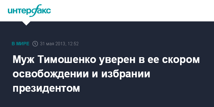 Киев. 31 мая. INTERFAX.RU - Супруг Юлии Тимошенко Александр Тимошенко, получивший политическое убежище в Чехии, называет своей первоочередной задачей освобождение экс-премьера.
