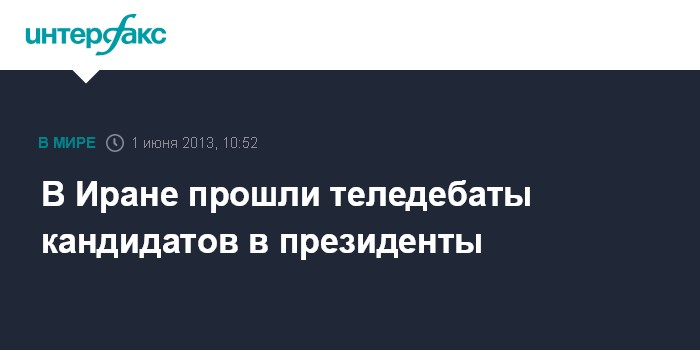 Тегеран. 1 июня. INTERFAX.RU - Первые дебаты кандидатов в президенты Исламской республики Иран прошли в ночь на субботу в эфире иранского национального телевидения.