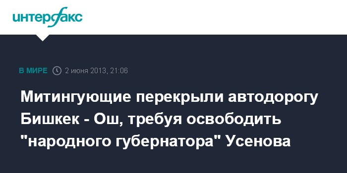 Место перекрытия дороги - рядом с селом Барпы Джалал-Абадской области на юге Киргизии. В настоящий момент представители местных органов власти и силовых структур региона пытаются уговорить митингующих прекратить акцию и разойтись по домам.