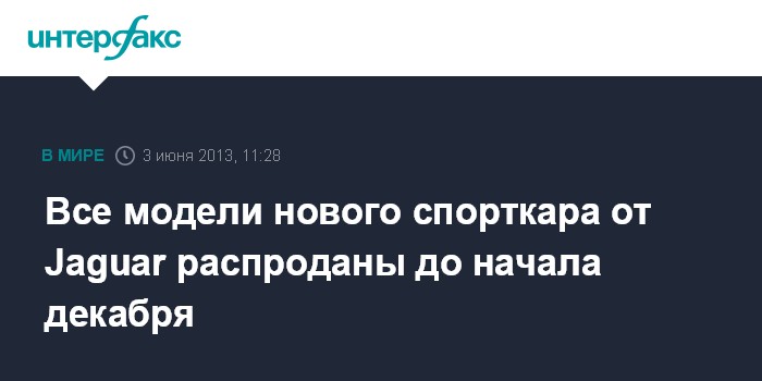 Москва. 3 июня. INTERFAX.RU – Новая модель Jaguar F-Type, вставшая на конвейер в начале этого года, уже распродана на полгода вперед, сообщает Automotive News Europe.