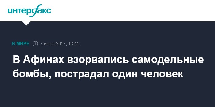 Афины. 3 июня. INTERFAX.RU - Три самодельных взрывных устройства, изготовленных из газовых баллонов, сработали в понедельник в Афинах, сообщили власти.