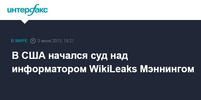 Вашингтон. 3 июня. INTERFAX.RU - Судебный процесс над рядовым армии США Брэдли Мэннингом стартовал, сообщают в понедельник американские СМИ.