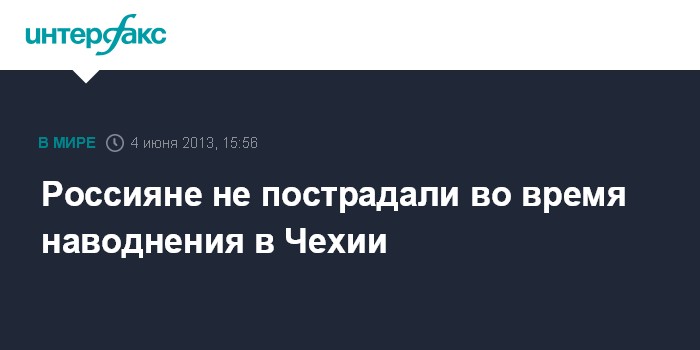 "Необходимости в организации экстренной доставки в Россию находящихся в Чехии наших туристов не возникло, пострадавших от наводнения россиян нет", - говорится в комментарии российского внешнеполитического ведомства, распространенном во вторник.
