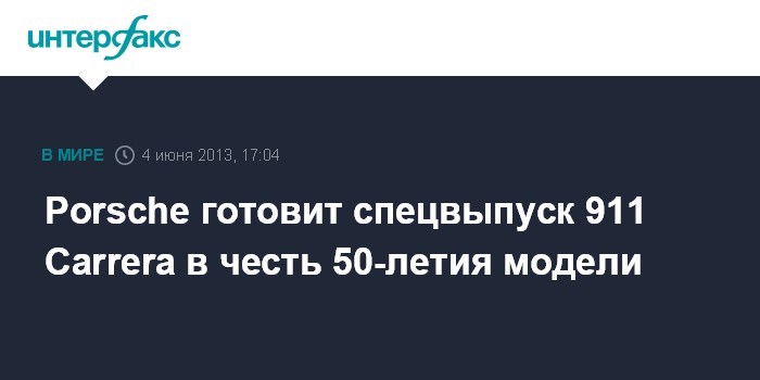 Москва. 4 июня. INTERFAX.RU – Немецкий производитель Porsche к юбилею своего флагмана 911 готовит спецсерию модели. Автомобиль с названием 911 Carrera S50 Years Edition будет представлен публике 12 сентября на Франкфуртском автосалоне.