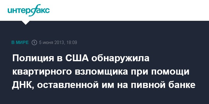 Полиция в США обнаружила квартирного взломщика при помощи ДНК, оставленной им на пивной банке