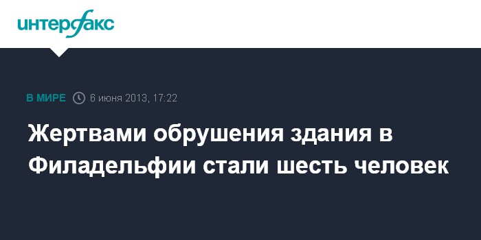 Вашингтон. 6 июня. INTERFAX.RU - Обрушение здания в центре Филадельфии на востоке США привели к гибели шести человек, сообщают в четверг американские СМИ.
