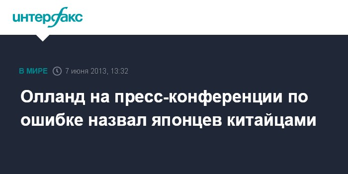 Токио/Париж. 7 июня. INTERFAX.RU - Президент Франции Франсуа Олланд в пятницу в ходе пресс-конференции в Токио по ошибке назвал японских подданных китайцами. Президент решил выразить соболезнования родным и близким 10 японцев, погибших в результате атаки террористов в Алжире в январе 2013 года.
