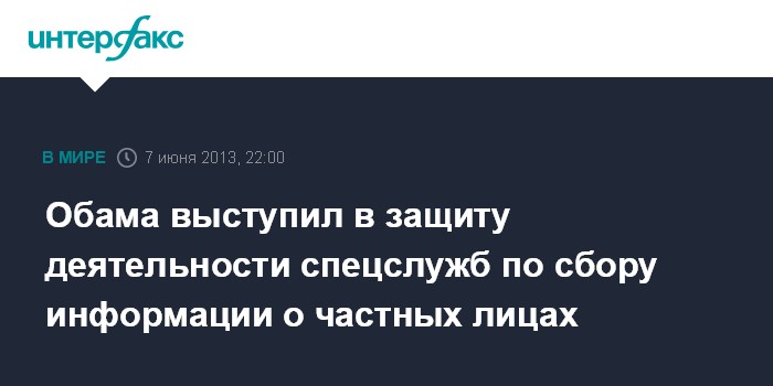 Вашингтон. 7 мая. INTERFAX.RU - Деятельность американских спецслужб по тайному сбору данных о частных лицах является легальной, сообщил в пятницу журналистам президент США Барак Обама.