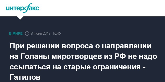 При решении вопроса о направлении на Голаны миротворцев из РФ не надо ссылаться на старые ограничения - Гатилов