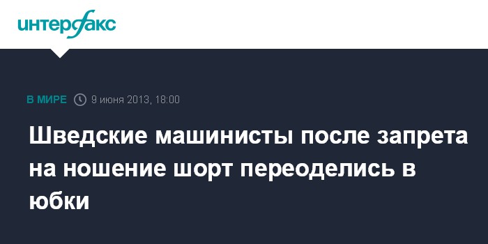 Лондон. 9 июня. INTERFAX.RU - Более десяти машинистов в Швеции обошли запрет на ношение шорт, надев юбки для работы в жаркую погоду, сообщает в воскресенье британская телерадиокорпорация BBC. Компания Arriva запретила своим сотрудникам носить шорты, после того как стала оператором на одной из железнодорожных линий в пригороде Стокгольма.